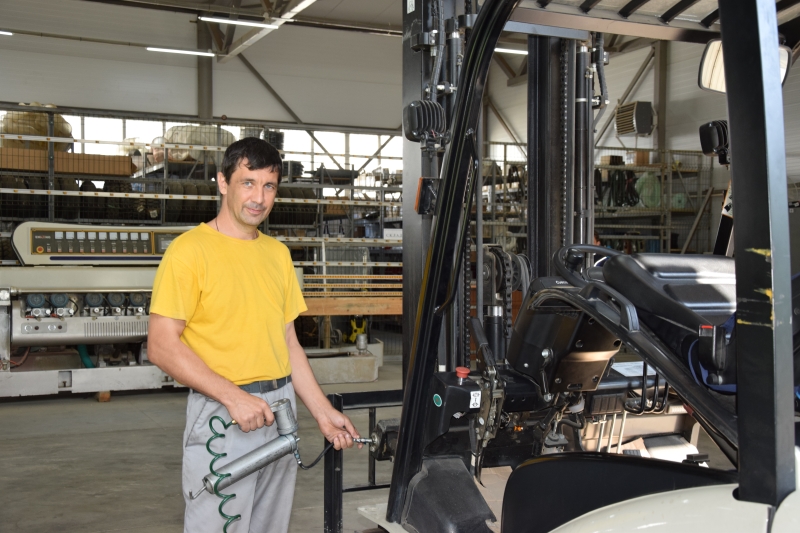 За автотехнику отвечает Павел Сердечный. Благодаря его стараниям весь автопарк погрузчиков, каров и штабелеров исправен. Усилиями маленького коллектива все механизмы в цехах крутятся, поднимают, пилят, сверлят, кромят... Работают исправно.